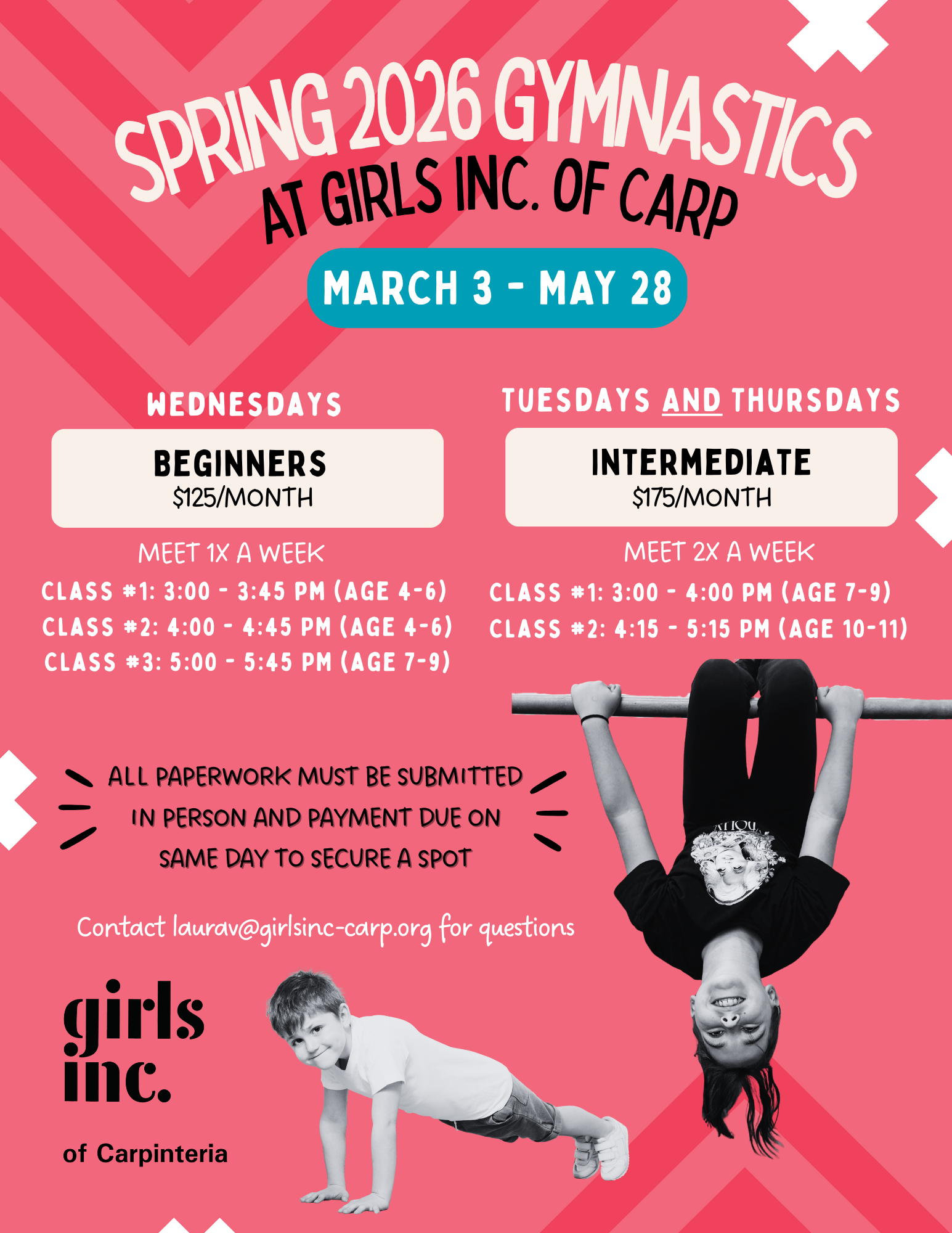 Girls Inc. of Carpinteria re-launched its gymnastics program in 2021 after almost 25 years! After feedback from the community and the limits of physical offerings for youth in Carpinteria, we are proud to re-introduce and build a sustainable program.
